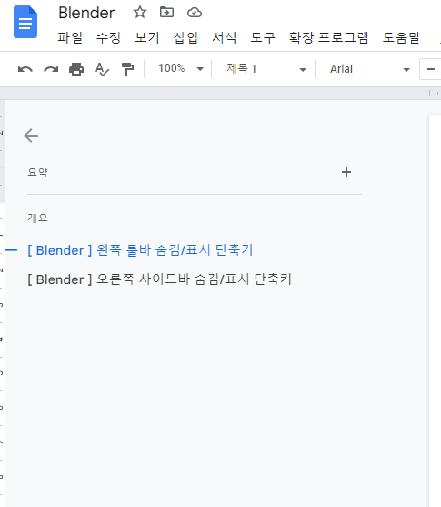 요즘 3D 에 관심이 생겨서 블렌더를 공부해보고 있습니다. 블렌더 관련 단축키들을 정리하려고 구글 docs 로 정리를 하고 있었는데.. 생각지도 못한 불편함이 있었습니다.