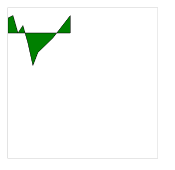 import * as d3 from 'd3'; interface Data { x: number; y: number; } window.addEventListener('load', function() { const data: Data[] = [ {x: 0, y: 20}, {x: 10, y: 15}, {x: 20, y: 50}, {x: 30, y: 35}, {x: 40, y: 70}, {x: 50, y: 115}, {x: 60, y: 89}, {x: 90, y: 60}, {x: 125, y: 15}, ]; // data.sort((a, b) => a.y - b.y); console.log('data', data); // const xScale = d3.scaleLinear().domain([0, 6]).range([25, 175]); // const yScale = d3.scaleLinear().domain([0, 20]).range([175, 25]); const area = d3.area<Data>() .x(d => d.x) // 좌표의 x 값 .y0(50) // 영역을 그리는 y 축의 기준 값 (이 축을 기준으로 상, 하 영역이 구분됨.) .y1(d => d.y) // 좌표의 y 값 ; d3.select("svg") .append("path") .attr("d", area(data)) .attr("fill", "green") .attr("stroke", "black"); });html 코드는 다음과 같이 작성합니다.