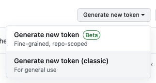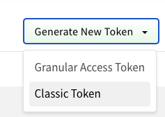 3) Generate New Token 클릭 후 "Classic Token" 클릭