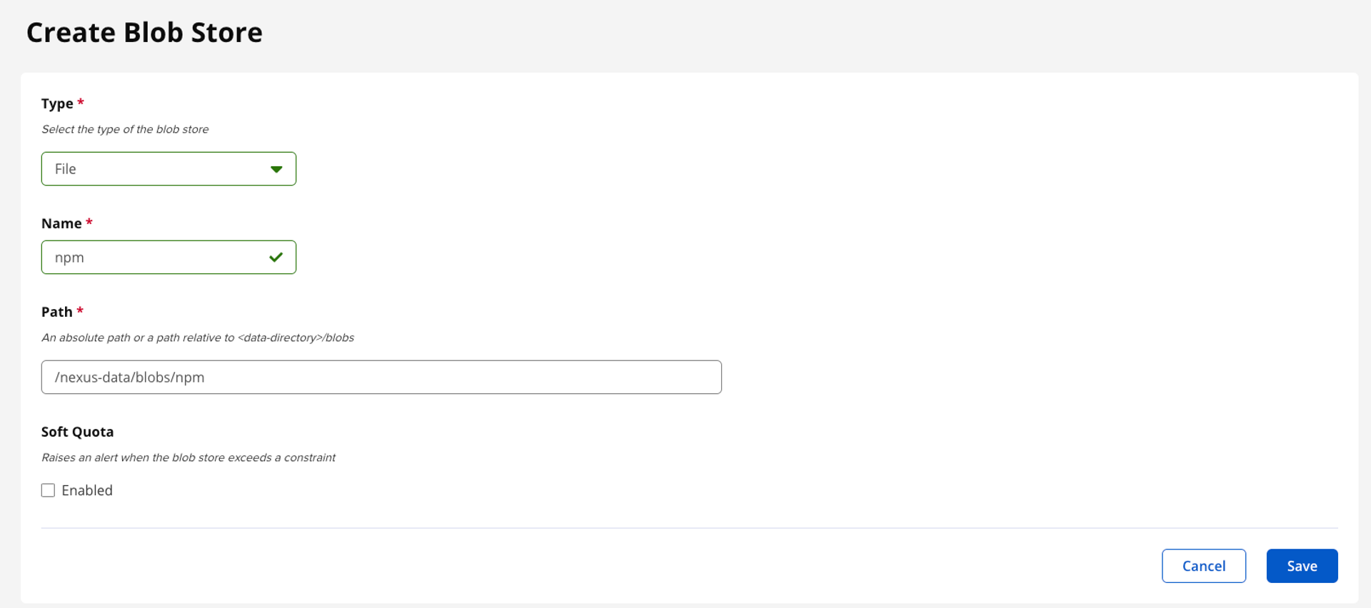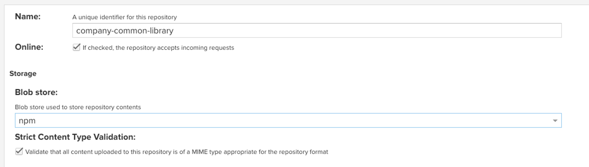 - Storage.Blob store : 이전에 생성했던 npm Blob Store 선택